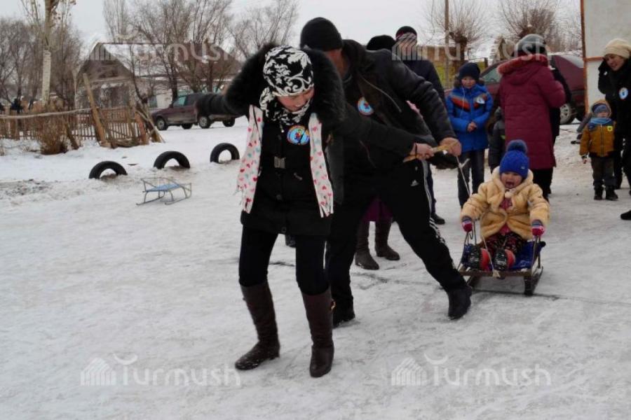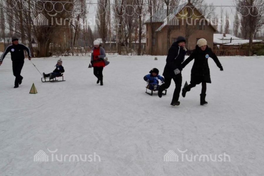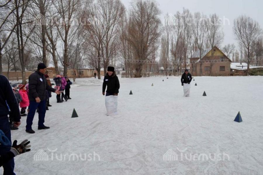 Фоторепортаж— Ак-талаалык ата-энелер чана менен жарышса, бөбөктөр муз үстүндө аркан тартышты