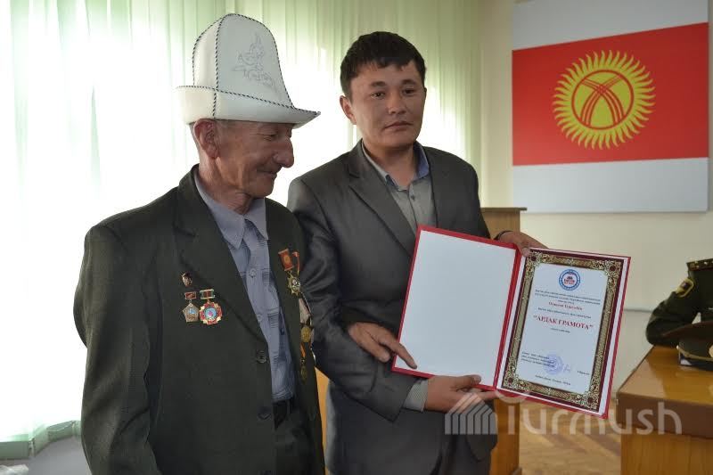 Ак-Талаадагы Чернобыль апаатынын катышуучуларына акчалай сыйлык жана кол сааттар тапшырылды (фото)
