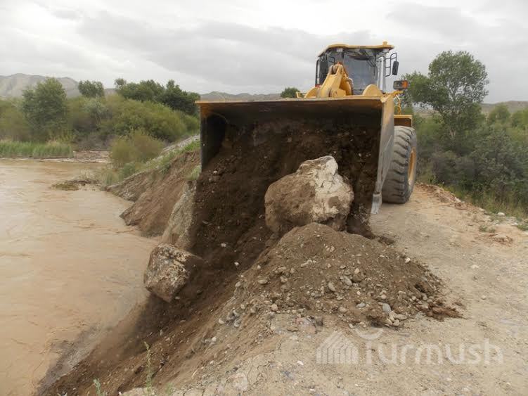 Нарын дарыясындагы суунун деңгээли Нарын—Баетов унаа жолундагы дамбага коркунуч жаратты (фото)