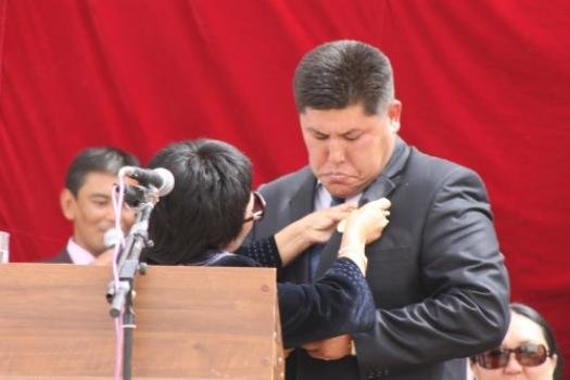 Маданият министри К.Талиева Ак-Талаа районунун акими С.Черикбаевге «Маданияттын мыкты кызматкери» төш белгисин тапшырды