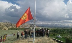 Коңорчок айылындагы дөбөгө Кыргызстандын туусу орнотулду