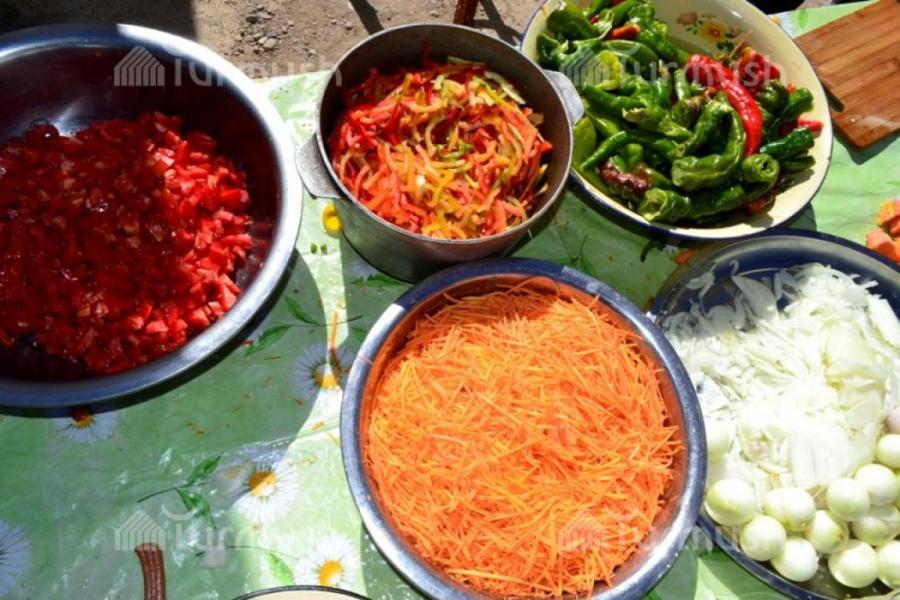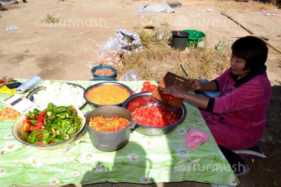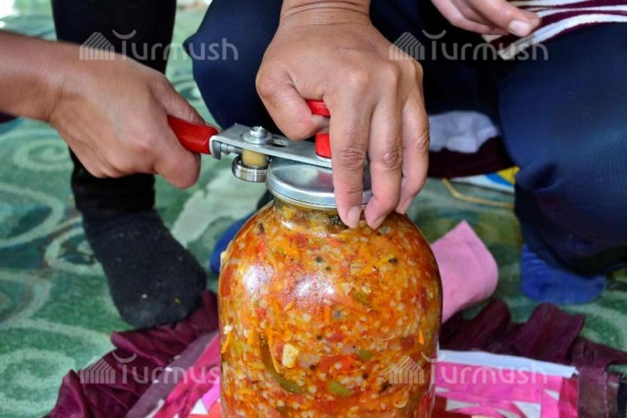 В Ак-Талинском районе девушки начали закрывать салаты на зиму (фото)