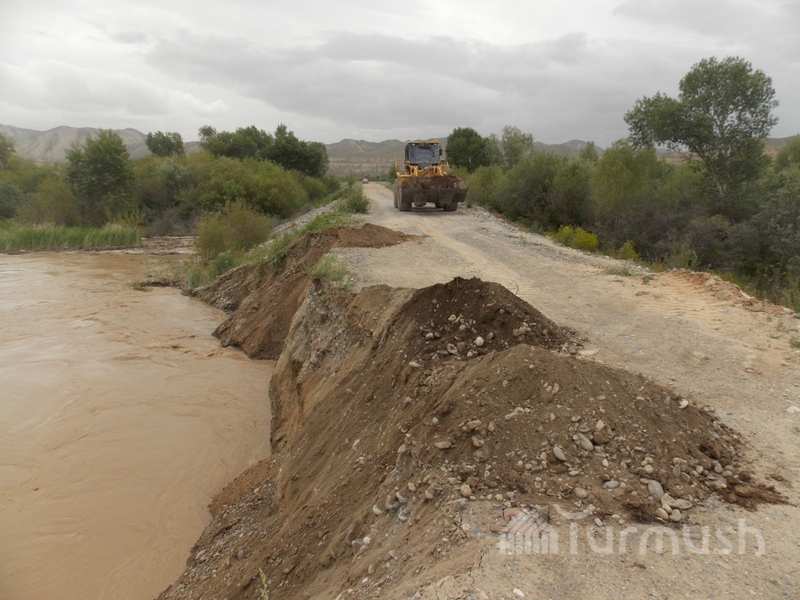 В селе Угут Ак-Талинского района провели берегоукрепительные работы в реке Нарын (фото)