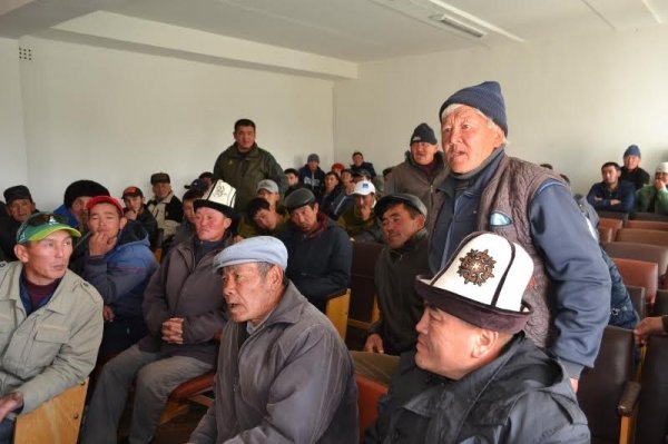 В Ак-Талинском районе жители села Баетов собрались в здании госадминистрации выразить протест из-за приостановления добычи угля и повышения цен (фото, видео)