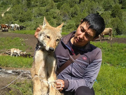 Уланбек из Ак-Талы с помощью своих тайганов поймал волчонка